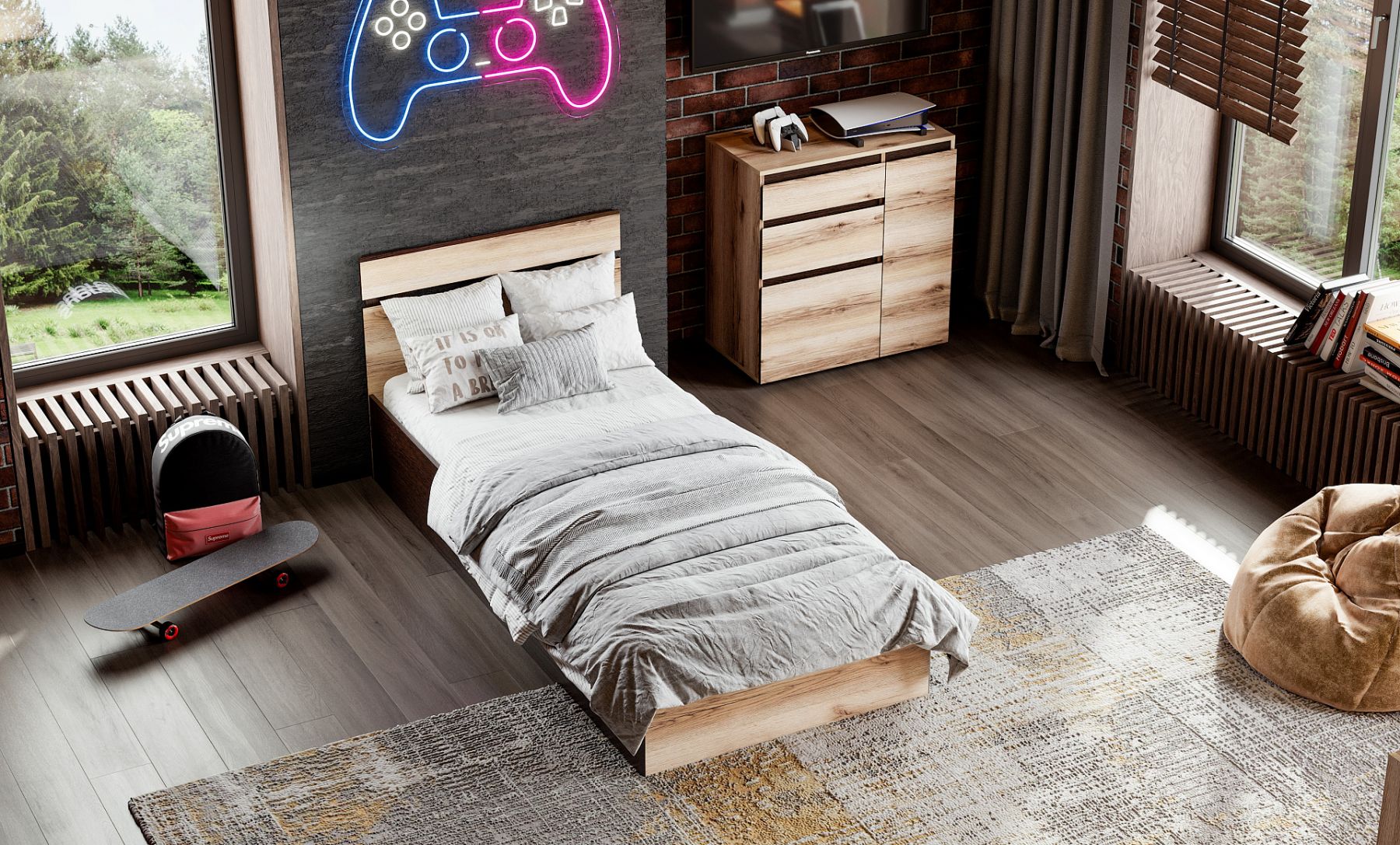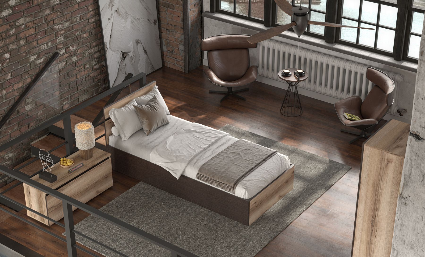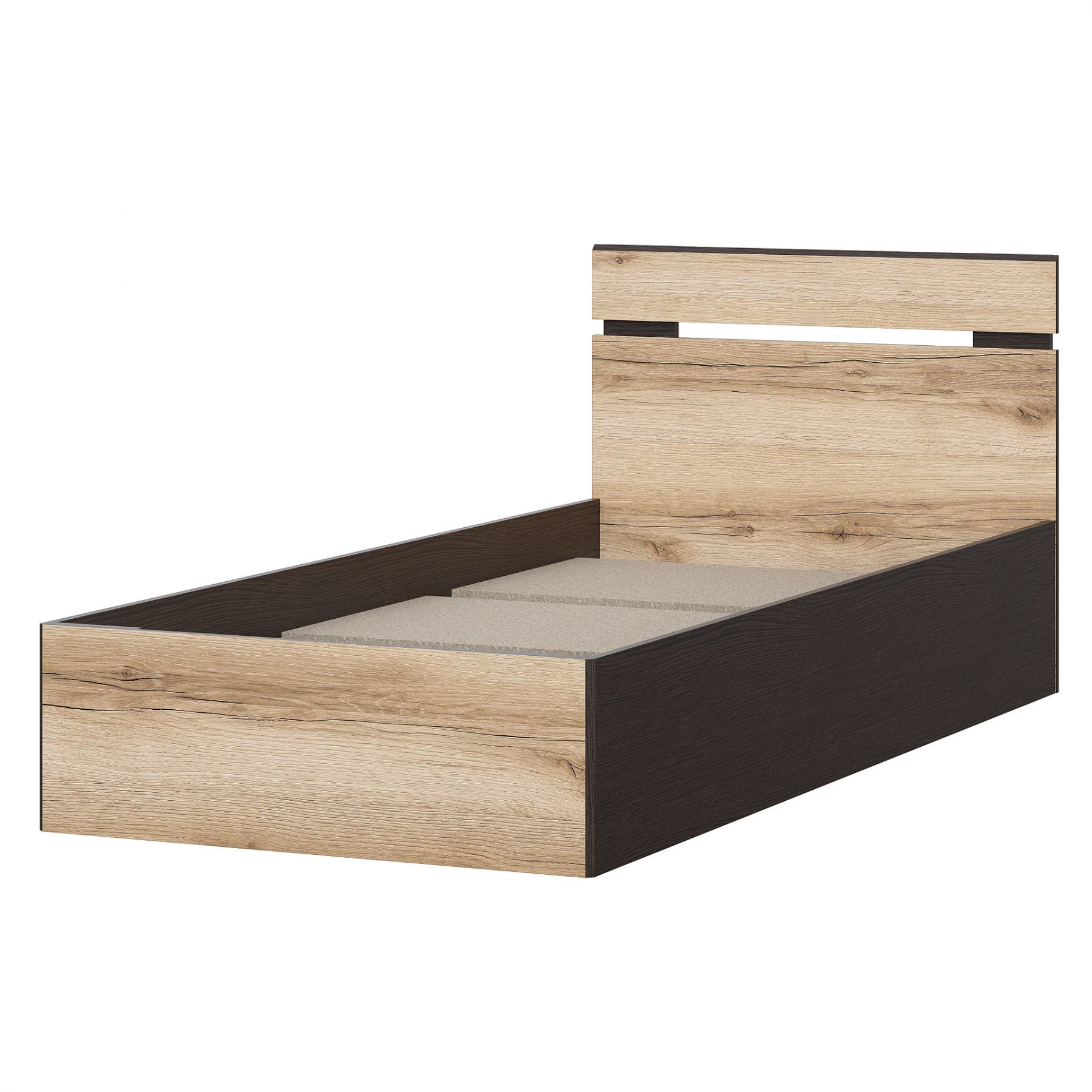 Не забудьте приобрести матрас к кровати. Коллекция мебели Берген - отличный вариант для обустройства интерьера в модном стиле Лофт. Сочетание двух декоров "Дуб Делано" и "Дуб Венге" наполнит пространство теплом и будет актуально смотреться в любом современном интерьере. Особенности: - спальное место 900х2000 мм - настил-основание в комплекте