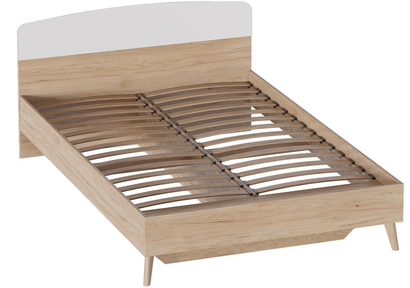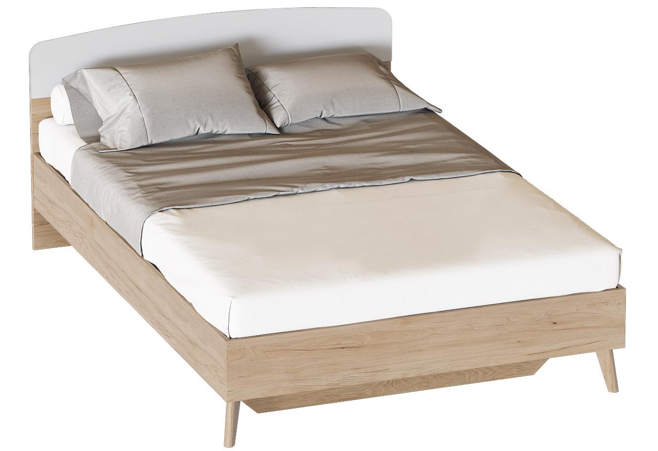Изголовье МДФ цвета - Белый матовый, царги и изножье ЛДСП цвета - Дуб натуральный Светлый, опоры массив березы.