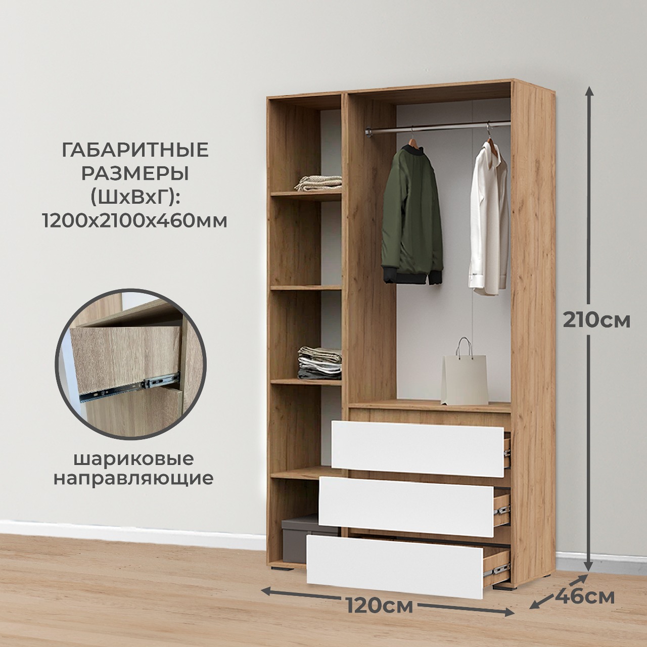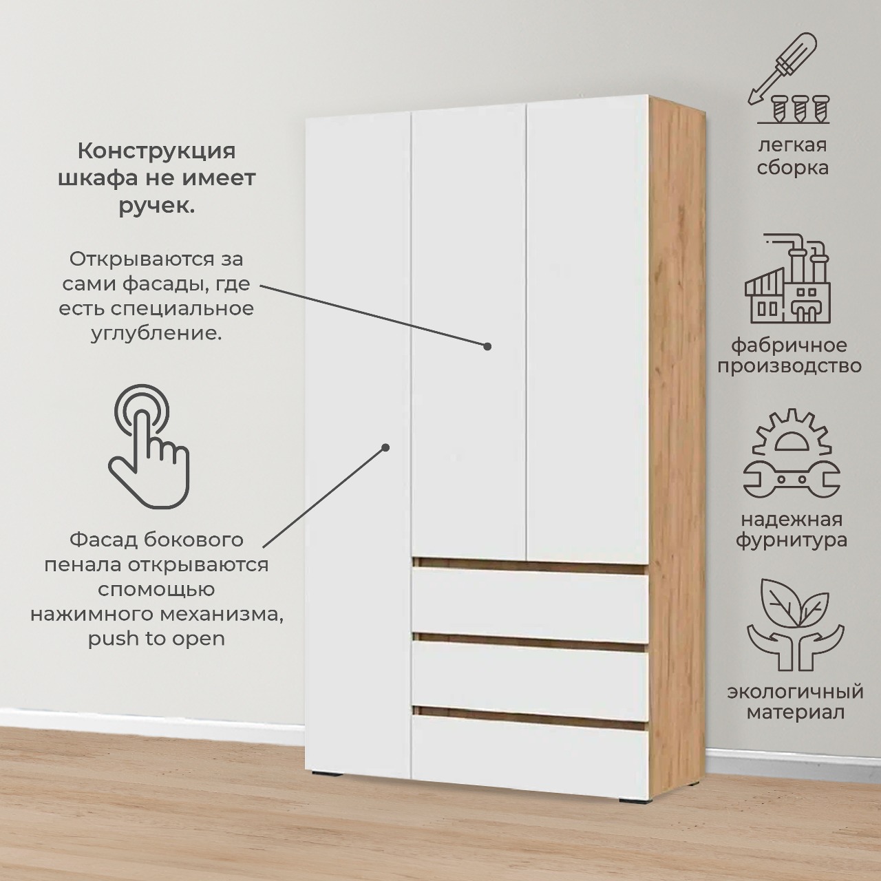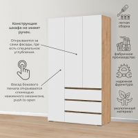 Шкаф трехстворчатый с ящиками ХЕЛЕН ШК-06 дуб крафт золотой,белый