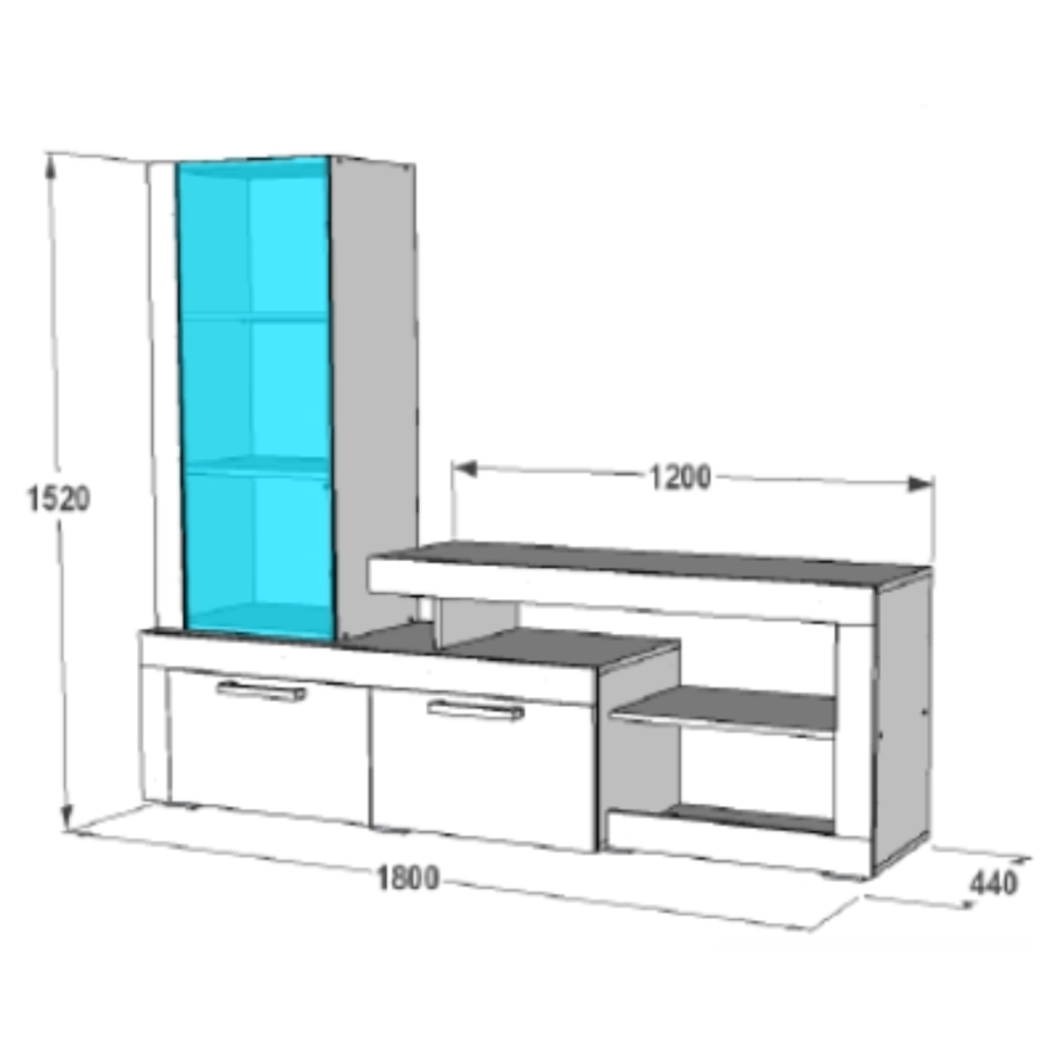 Габариты ВхШхГ 1525 × 1800 × 440 мм ЛДСП Дуб крафт серый - дуб крафт белый Ниша под тв: ширина 1200